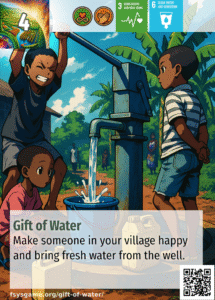Rubin P. (Aged 12) has contributed a Collectible Card during a Card Design Playshop in Germany. The card highlights and features the Busano Well.
